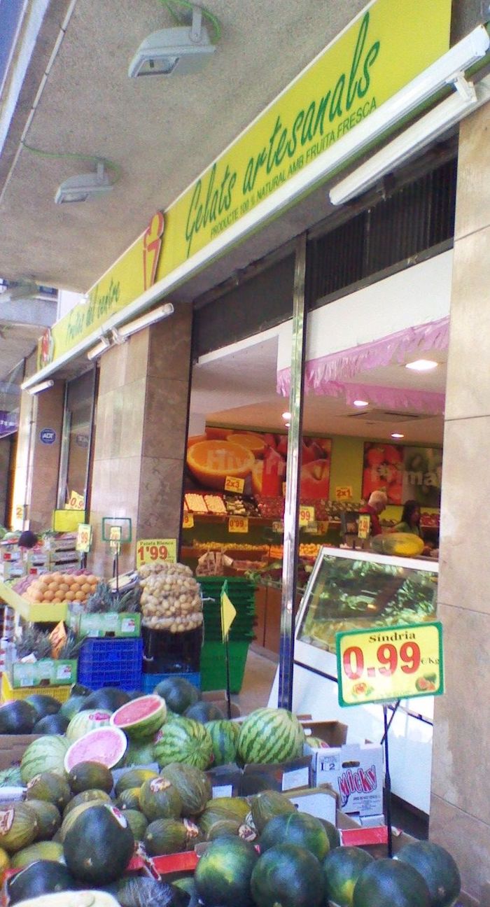 Venta de fruita i verdura / Gelats artesanals fets amb producte 100% natural amb fruita fresca / Suc de llimona / Granissats / Suc de llimona i maduixa / Suc de taronja / Suc de mango i taronja.